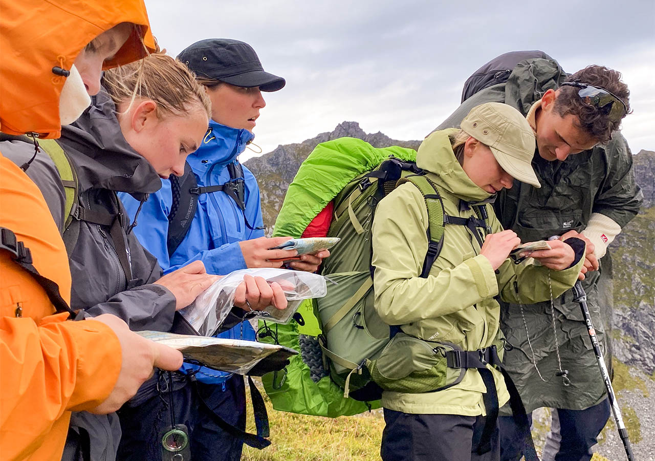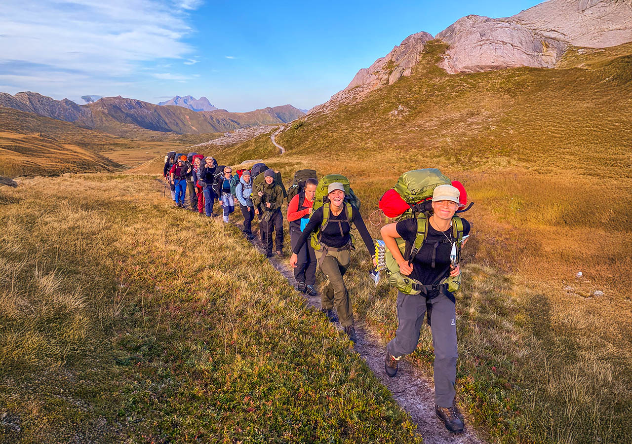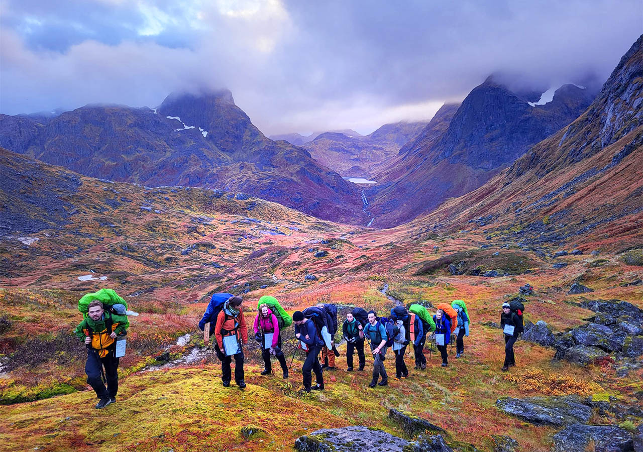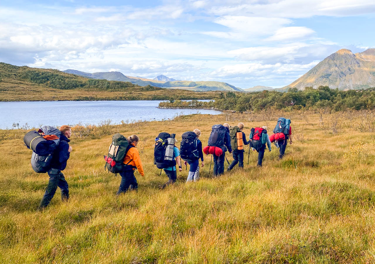 På denne linja lærer vi mest av å være på fjelltur sammen. Med omtrent 45 overnattinger ute i telt får vi virkelig kjenne på elementene og lære å ta ansvar for planleggingen og gjennomføringen av turer. Det blir både mange turer i nærliggende Lofotfjell og lengre turer til Svartisen, de ville fjellene inn mot svenskegrensa og Finnmarksvidda på vinteren.