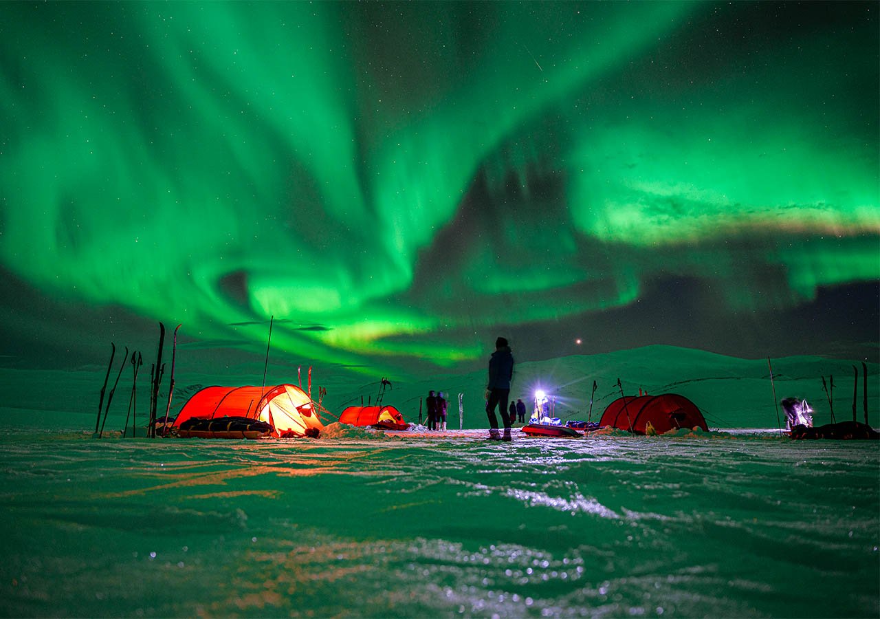 Alle våre turer gjennomføres høyt i nord. Et år nord for polarsirkelen vil gi deg alt fra blodrød himmel og rimfrost på skistavene, til dansende nordlys, klarblå stjernehimmel og varmende leirbål. Vi ønsker ikke å sette andre spor i naturen enn skisporene vi etterlater oss, og søker stadig ny kunnskap om- og i naturen. På Fjell og ekspedisjon lærer vi hvordan vi respektfullt kan bruke og ta vare på naturen i all overskuelig fremtid.