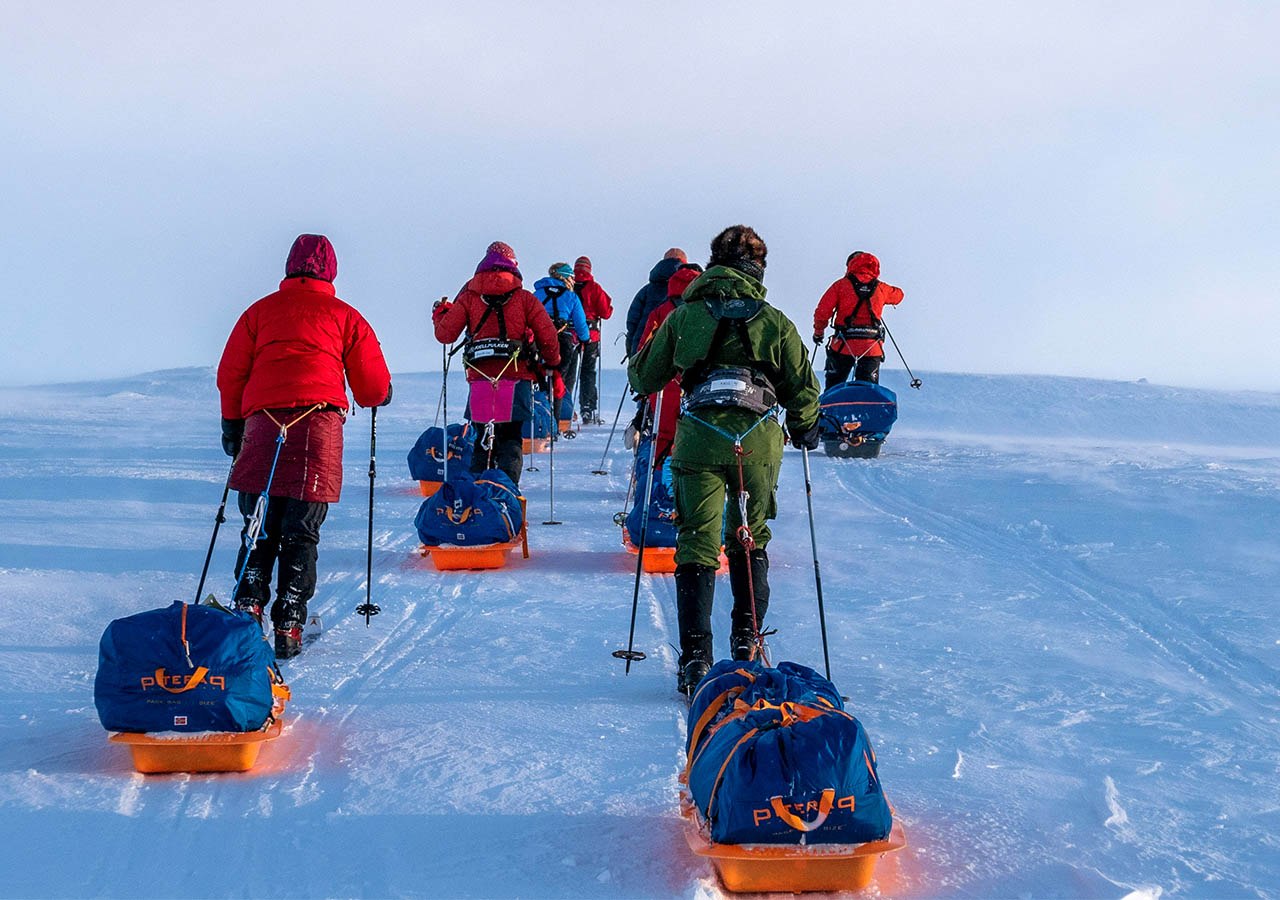Finn frem storsekken, fjellsko, pulk og fjellski. Gjennom mange turer og netter i telt blir du gradvis tryggere og mer selvstendig i fjellet, før vi sammen gjennomfører årets høydepunkt – en langtur på Finnmarksvidda.